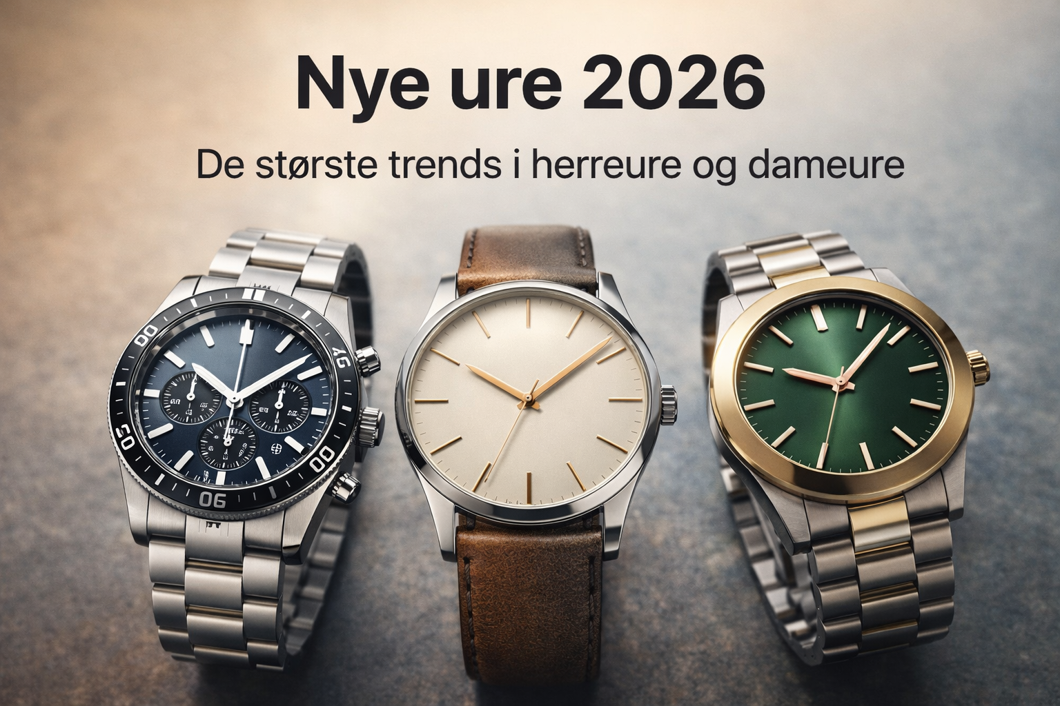 Denne artikel gennemgår de vigtigste tendenser inden for herreure og dameure i 2026 med fokus på farver, materialer, designretninger og urtyper, der hitter netop nu. Artiklen fungerer både som trendoverblik og som evergreen-indgang til nye ure og nyheder.